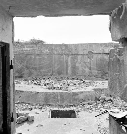 Vue de la batterie du cap de la Chèvre en 1969 : encuvement pour une pièce d'artillerieImmatriculation