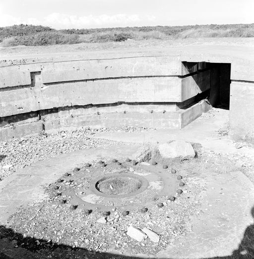 Vue de la batterie du cap de la Chèvre en 1969 : encuvement pour une pièce d'artillerieImmatriculation
