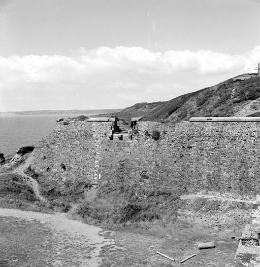 Vue des lignes de Quélern en 1969 : face droite du bastion n° 1. Vestiges de latrinesImmatriculation