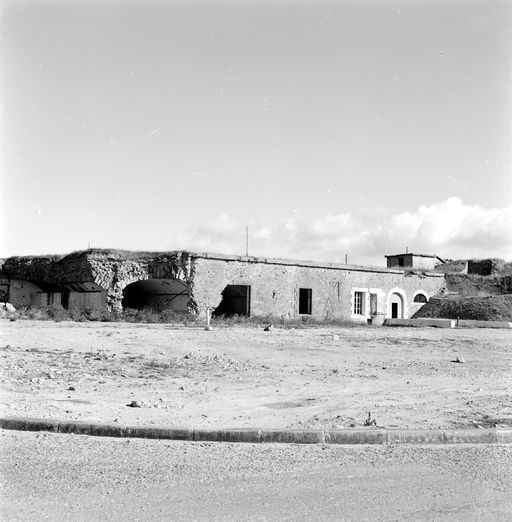 Vue du réduit de Quélern en 1969 : extrémité nord de la caserne casematée en partie détruite par les bombardements de 1944Immatriculation