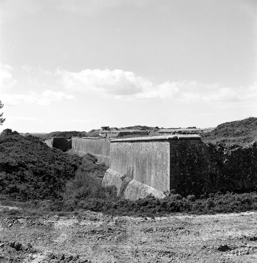 Vue du réduit de Quélern en 1969 : front sud-ouest. Au premier plan : le bastion 101. Arrière plan : le bastion 104Immatriculation