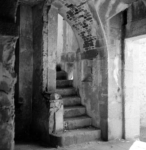 Camaret-sur-Mer, pointe du Toulinguet : vue de la tour-modèle n° 3 en 1969, entrée, escalier menant à la terrasseImmatriculation