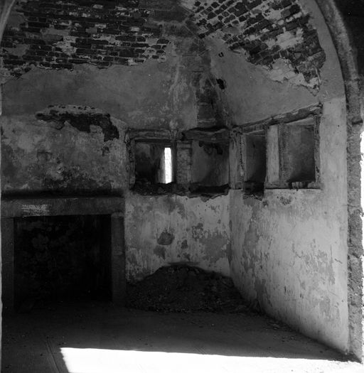 Camaret-sur-Mer, pointe du Toulinguet : vue de la tour-modèle n° 3 en 1969, chambrée au deuxième niveau, cheminée et créneaux de fusilladeImmatriculation