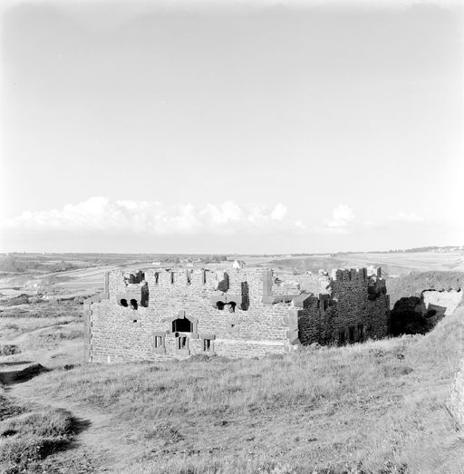 Vue générale du corps de garde crénélé de l'île de l'Aber depuis le terre-plein de la batterie en 1969Immatriculation