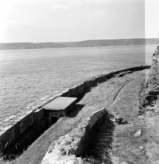 Vue de la batterie de Cornouaille en 1969 : parapet, abri léger avec dalle en bétonImmatriculation