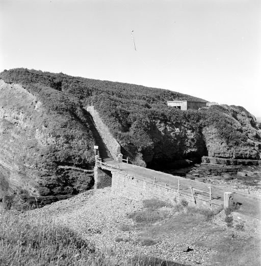 Vue générale de l'îlot du Diable en 1969 : passerelle bétonnée et usine électriqueImmatriculation