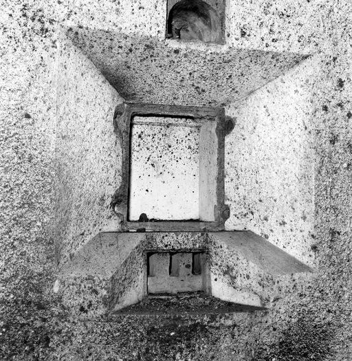 Vue de la batterie haute de la pointe Robert en 1969 : magasin à poudre sous roc, créneau de lampeImmatriculation