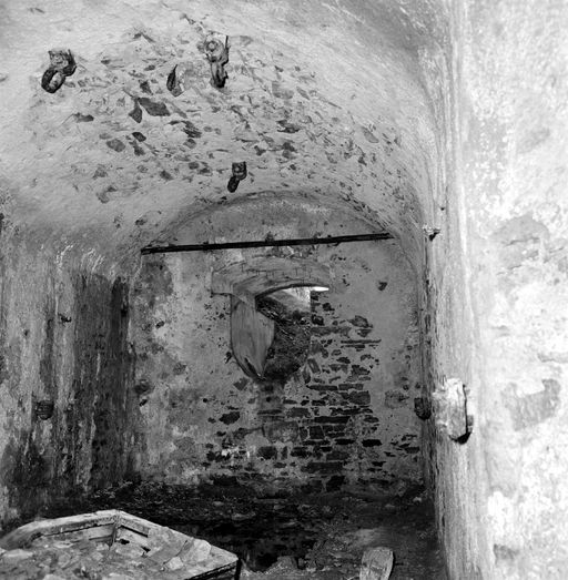 Vue de la batterie de rupture de la pointe Robert en 1969 : embrasure en partie bouchée depuis l'intérieur de la chambre de tirImmatriculation