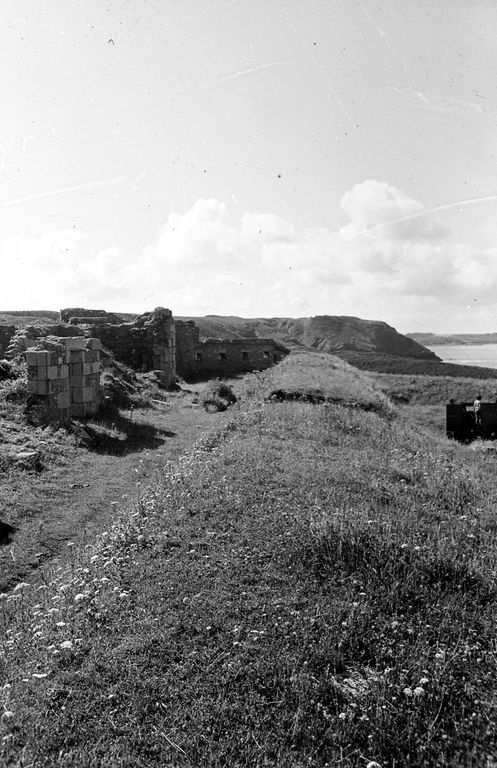 Vue du fort de la Fraternité en 1969 : talus du parados et vestiges du casernement centralImmatriculation