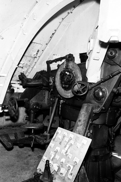 Vue de l'une des pièces de 105 mm SK C/32 Flak allemande de la batterie de Tremet en 1969Immatriculation