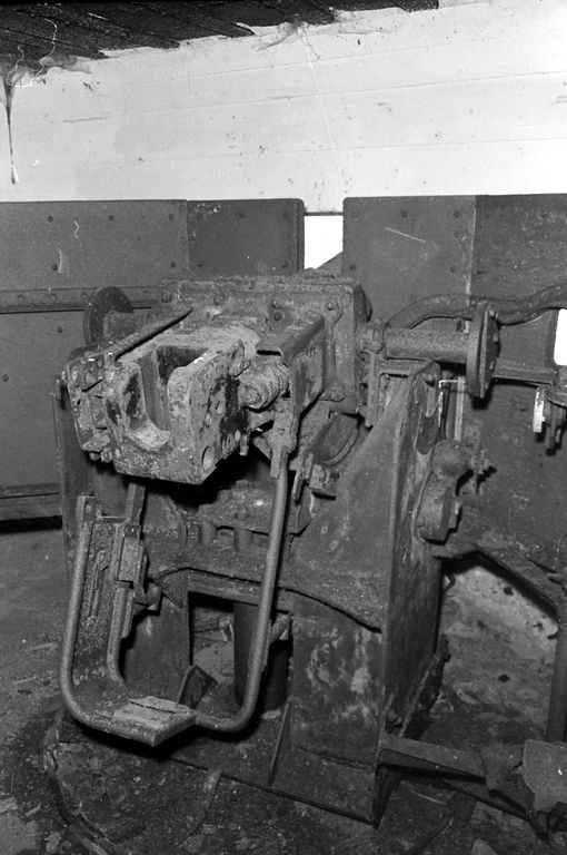 Vue de la batterie de rupture de Pourjoint en 1969. Les embrasures ont été coiffées par deux casemates pour canon antichars durant la Seconde Guerre Mondiale. Embrasure (ici ouest) dite à gradin encore dotée de son canon anticharsImmatriculation