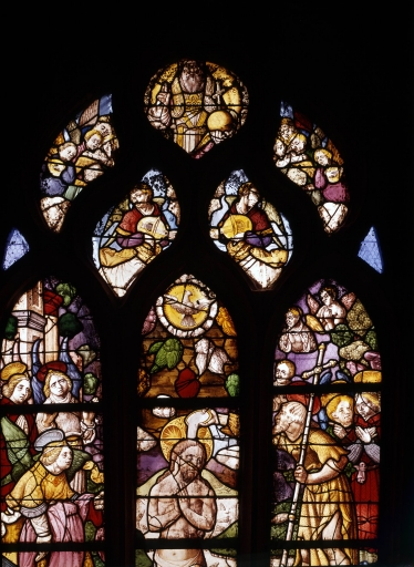 Chapelle Notre-Dame : vitrail deuxième fenêtre bas-côté nord, daté du XVIe siècleImmatriculation