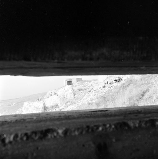 Vue de l'observatoire du bunker - poste de direction de tir de type M162a en 1969. En arrière-plan : bunker - casemate pour canon de 164,7 mmImmatriculation