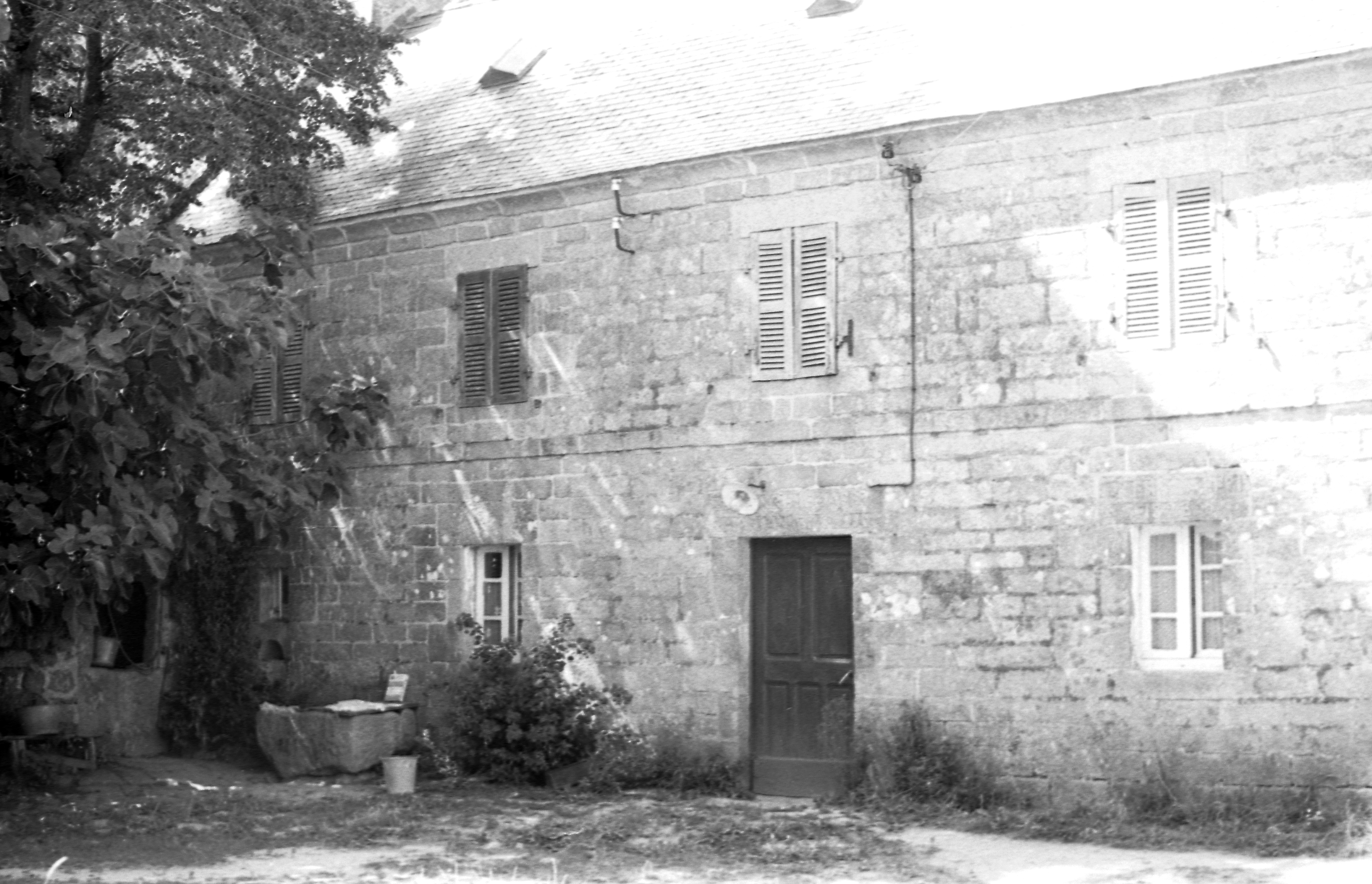Elévation antérieure du logis daté 1823 et puits daté 1826. (1969)Immatriculation