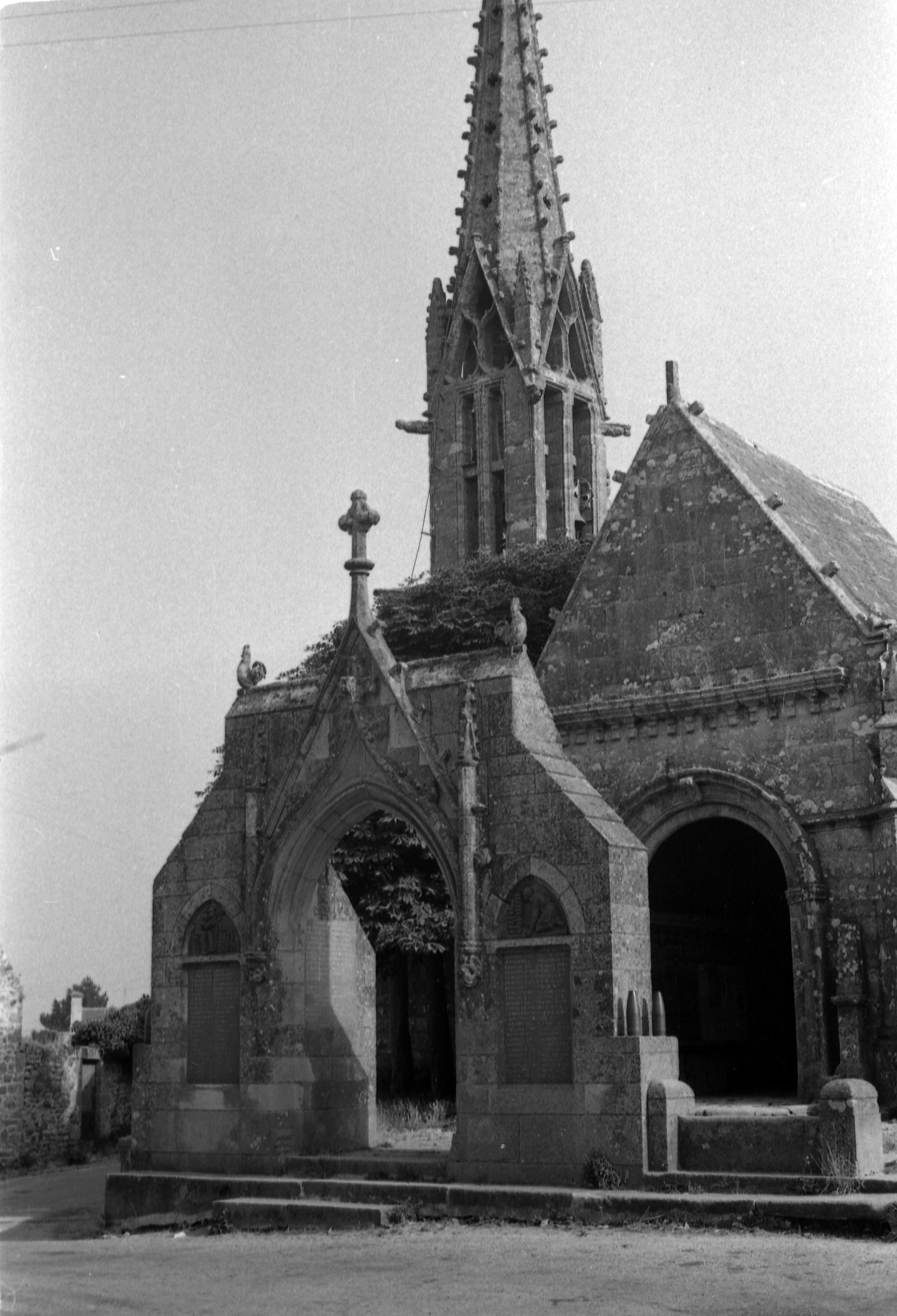 Elévation sud, ancien arc de triomphe devenu monument aux morts et entrée du porche sud. (1969)Immatriculation