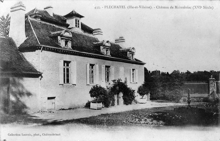 Carte postale ancienne - 433. Pléchâtel (I.-et-V.) - Le château de Mainténiac.Immatriculation