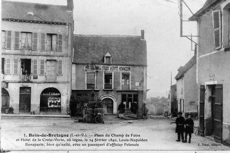 Carte postale ancienne, Maison, 10 place Henri IV - Hôtel de la Croix Verte, place du champs de foire.Immatriculation