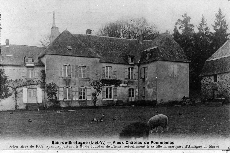 Carte postale ancienne. Bain-de-Bretagne - Vieux château de Pomméniac.Immatriculation