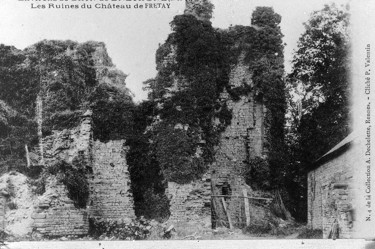 Carte postale ancienne. Environs de Bain-de-Bretagne les ruines du château du Fretay.Immatriculation
