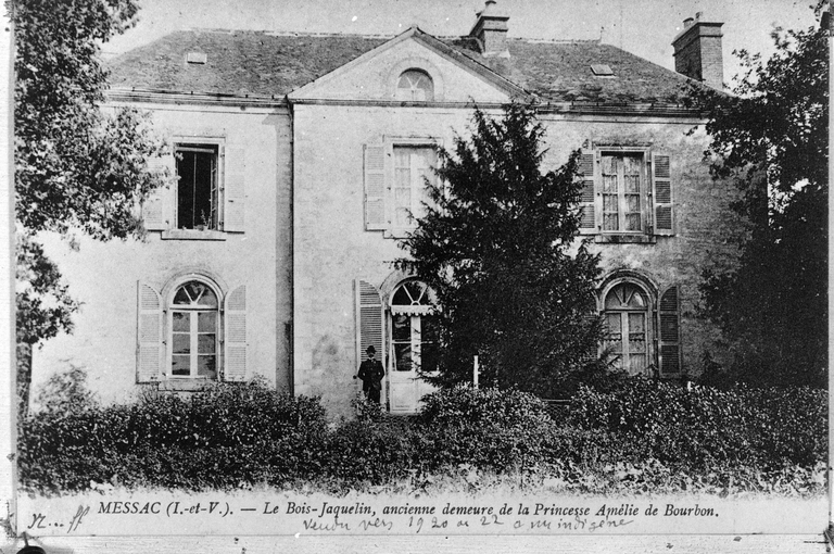 Carte postale ancienne. Messac (I.-etr-V.) - Façade, le Bois Jacquelin.Immatriculation