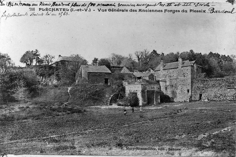 Carte postale ancienne. 716 - Pléchatel (I.-et-V.) - Vue générale des anciennes forges du Plessis-Bardoul.Immatriculation