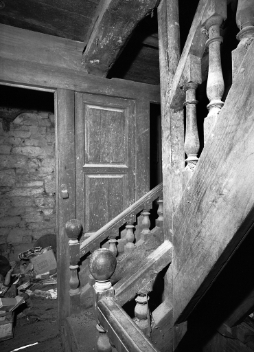 Maison au bourg (7, parcelle 1020) : ancien presbytère, escalier, étage, vue généraleImmatriculation