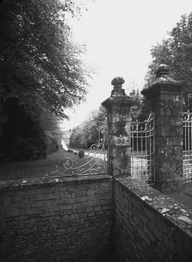 Entrée est : détail des piliers nord et de l'artichautImmatriculation