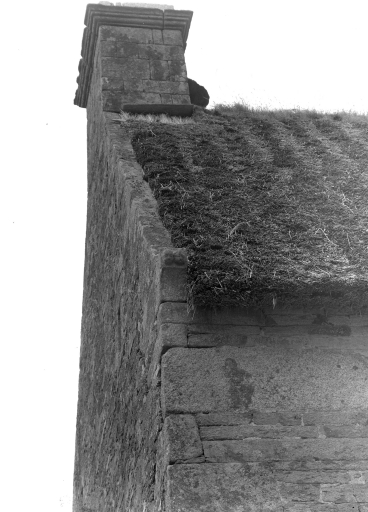 Bâtiment principal, pignon sud, pierre d'assise du rampant est : détail de sculptureImmatriculation