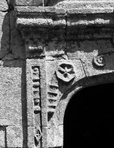 Porte de la façade sud : contre-clef et pilastre de gaucheImmatriculation