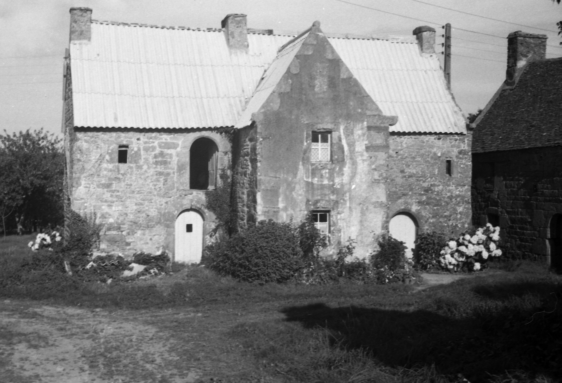 Trémel, Louc'h : ferme de type à avancée centrale, élévation antérieure orientée vers l'ouest-sud-ouest, photographie de 1970Immatriculation