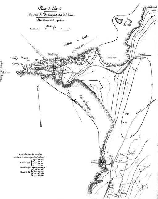 Plan de situation de la batterie du Toulinguet (4 canons G de 24 cm modèle 1876 sur affûts G PC, 4 canons de 19 cm modèle 1875-1876 sur affûts G PC, 4 canons G de 95 mm sur affûts G de côte)Immatriculation