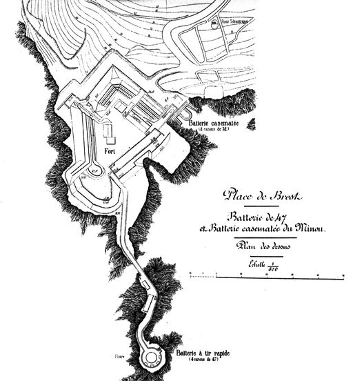 Batterie de 47 mm à tir rapide (4 canons M de 47 mm modèle 1885 TR sur affûts M modèle 1885 crinoline), Pointe du Petit Minou (Plouzané),