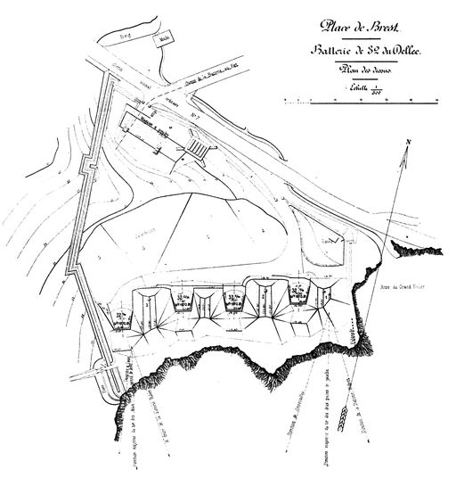 Plan de de la batterie de 32 cm du Dellec (4 canons de 32 cm modèle 1870-1881 sur affûts M modèle 1882 PA)Immatriculation