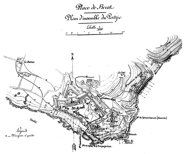 Plan de l'ensemble fortifié du Portzic, Direction d'Artillerie du génie de Brest, fin 19e siècleImmatriculation