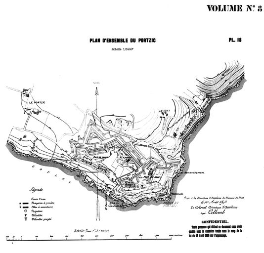 Plan de l'ensemble fortifié du Portzic, Direction d'Artillerie du génie de Brest, fin 19e siècleImmatriculation