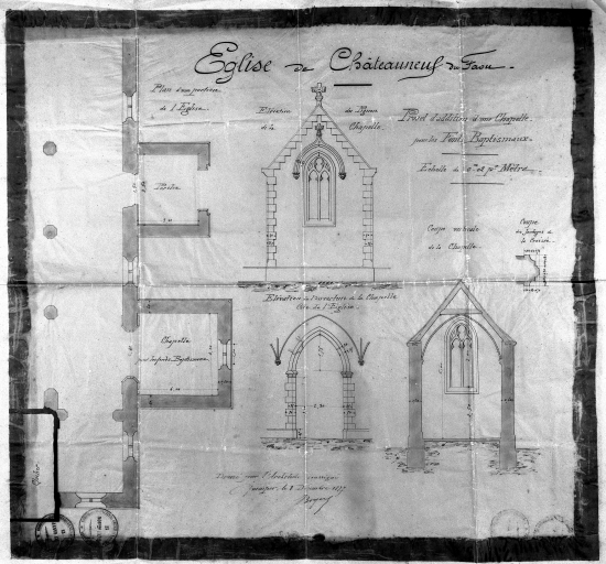 Châteauneuf-du-Faou, église paroissiale Saint-Julien et Notre-Dame : projet d'addition d'une chapelle pour les fonts baptismaux, 1877 (reproduction A.D. Finistère, 1 V. 307 de 1970)Immatriculation