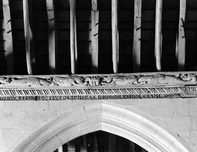 Sablière nord de la nef, travée 3, détail inscription.Immatriculation