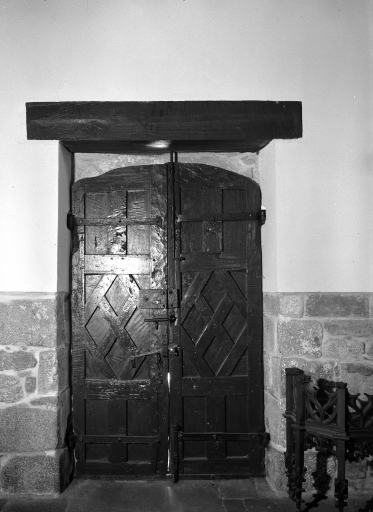 Plomodiern, église paroissiale Saint-Mahouarn : porche sud, vantail de la porte, état en 1970Immatriculation