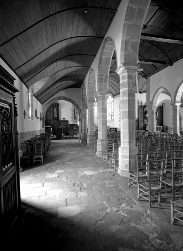 Plomodiern, église paroissiale Saint-Mahouarn : bas-côté nord, vers l'est, état en 1970Immatriculation
