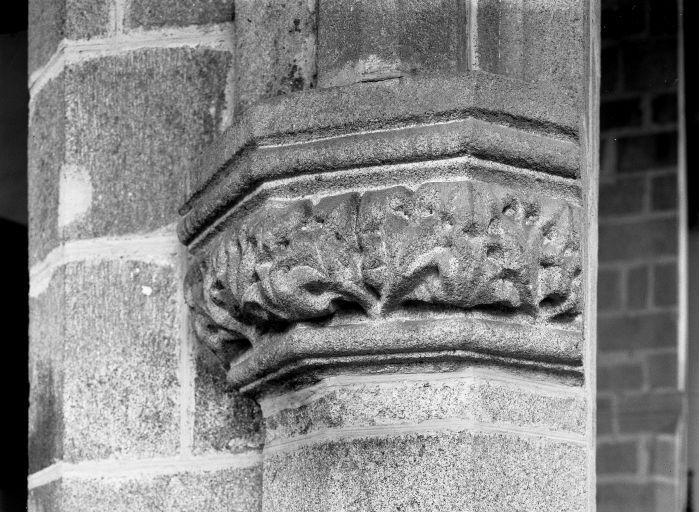 Plomodiern, église paroissiale Saint-Mahouarn : bas-côté sud, détail du chapiteau de l'arcade ouvrant sur le transept, état en 1970Immatriculation