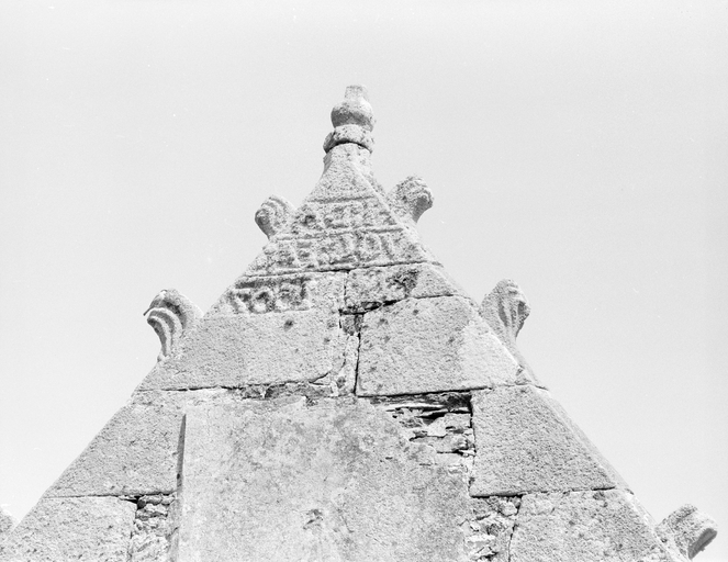 Façade sud, bras du transept, détail inscription au pignonImmatriculation