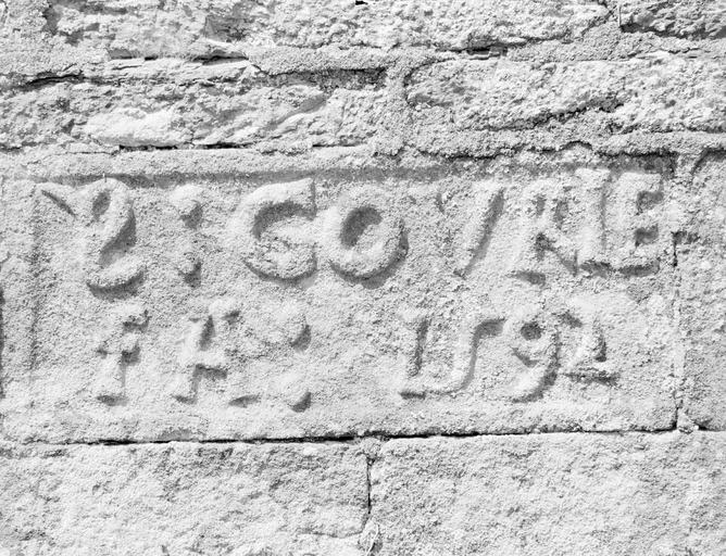 Façade sud, détail inscription du mur de la nefImmatriculation