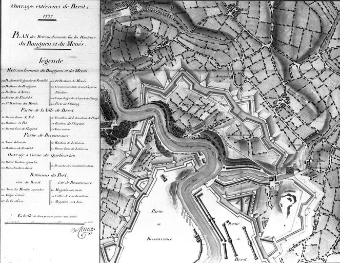 Ouvrages extérieurs de Brest, 1777 : plan des retranchements sur les hauteurs du Bougen et du MenèsImmatriculation