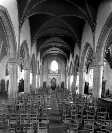 Plonévez-Porzay, église paroissiale Saint-Miliau : nef, vue générale vers l'ouest, état en 1970Immatriculation