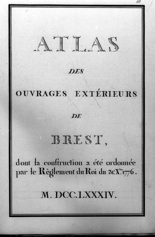 Atlas des Ouvrages extérieurs de Brest, dont la construction a été ordonnée par le réglement du Roi du 31 décembre 1776Immatriculation