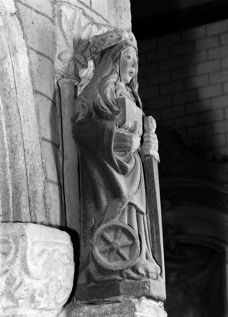 Statue (d'applique, petite nature) : sainte Catherine d'Alexandrie, église paroissiale Saint-Idunet (Châteaulin),