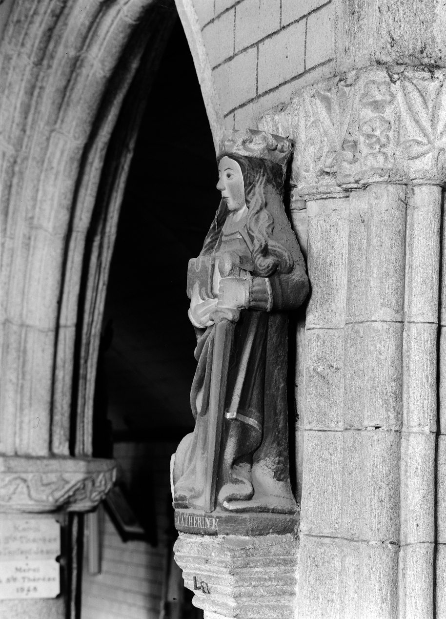 Statue (d'applique, petite nature) : sainte Catherine d'Alexandrie, église paroissiale Saint-Idunet (Châteaulin),