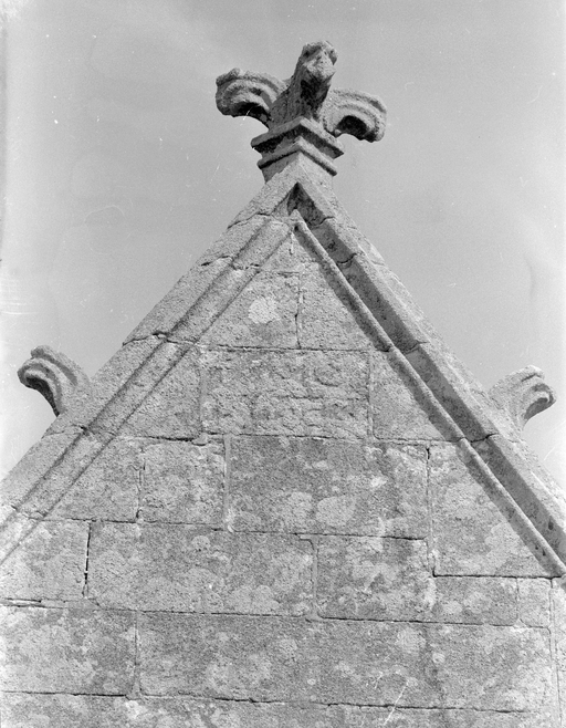 Fleuron et inscription au sommet du pignon du porche sudImmatriculation