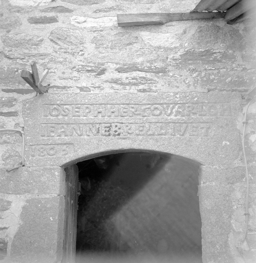 ferme : logis, détail inscription sur la porte d'entréeImmatriculation