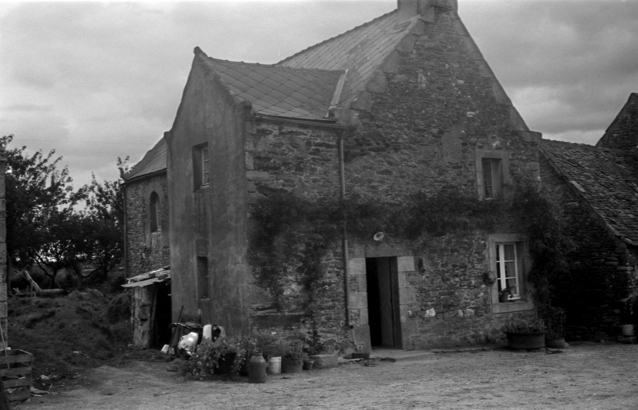 Plougonven, Pen Kerléo, maison à avancée, portant date 1661 et 1764 (état en 1970)Immatriculation
